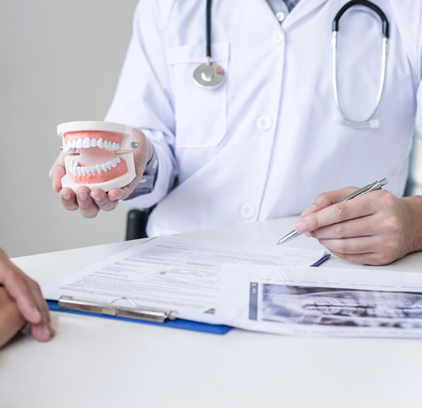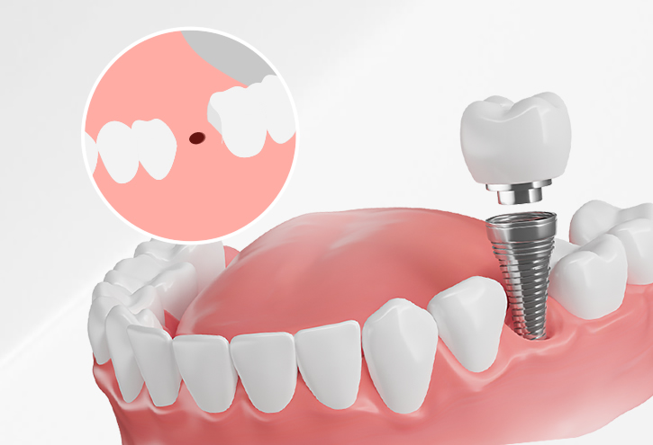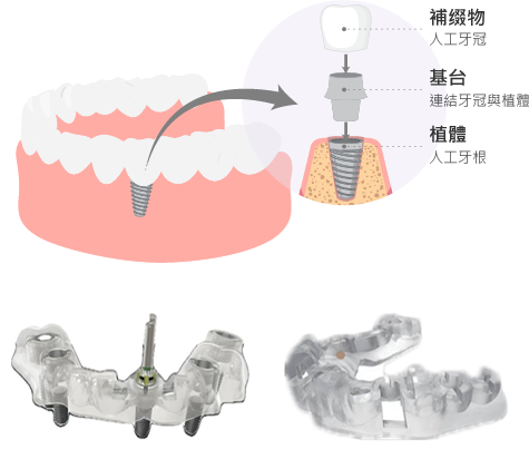 當牙齒因外傷或蛀牙缺失時,透過植入鈦金屬牙根,再安裝假牙,恢復原有牙齒的功能與美觀。